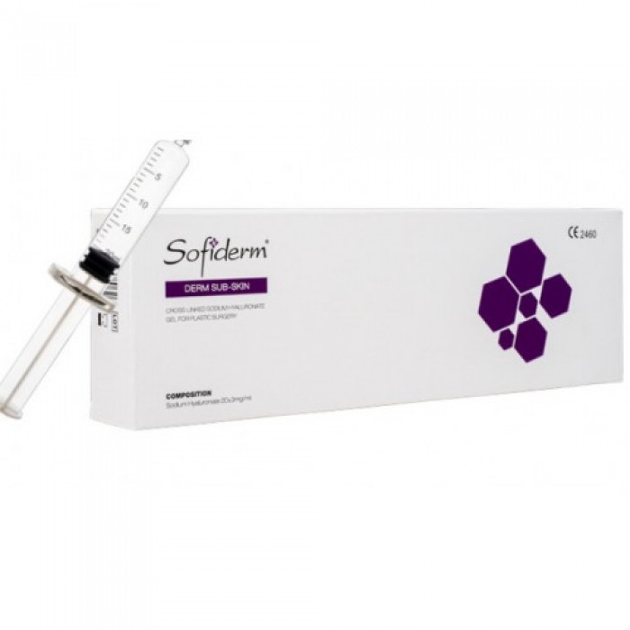 Sofiderm - является бифазным, прозрачным, стерильным, вязкоэластичным гелем стабилизированной гиалуроновой кислоты (BDDE) неживотного происхождения, который предназначен для восстановления объема и контурной пластики лица и тела.